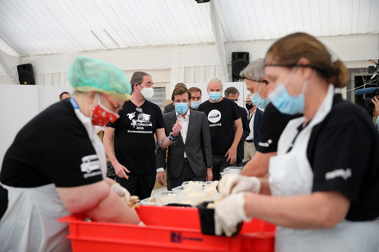 Se trata de una de las acciones comprendidas en ‘Que nadie se quede atrás: Emergencia STOPCORONAVIRUS’, programa del Ayuntamiento que cuenta con la colaboración de la empresa Ferrovial, que ha realizado una aportación de 150.000 euros, y de REALE Seguros, cuyo apoyo con otros 100.000 euros va a permitir que el proyecto continúe hasta el 31 de agosto. Además, también participan las ONG Cesal y Turismo Solidario 2020, la Asociación de Antiguos Alumnos de Escuelas de Hostelería y de Turismo, la Red de asociaciones y grupos de profesionales del sector del turismo y la hostelería y empresas de alimentación y abastecimiento.