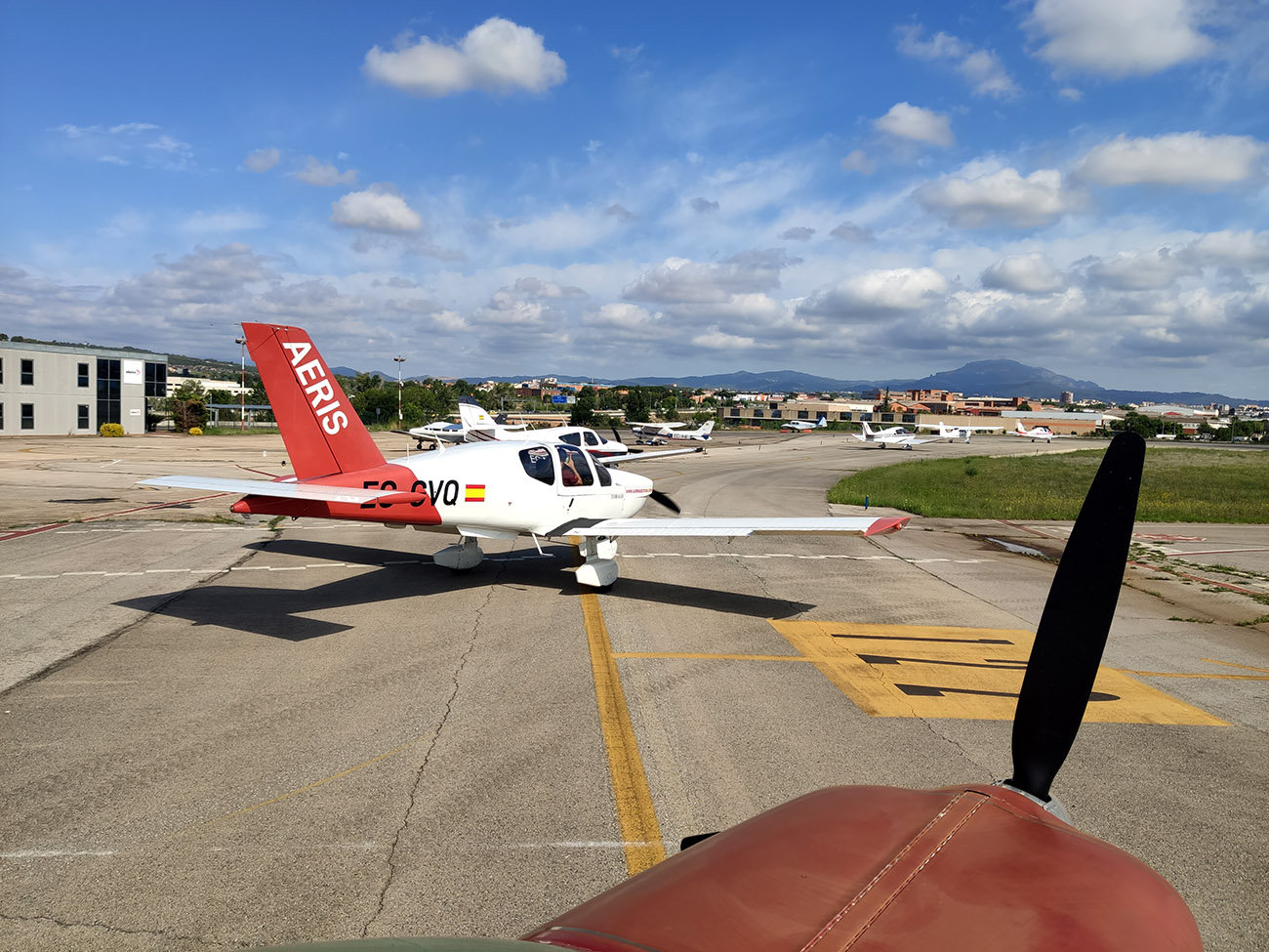 El día 14 las tripulaciones dieron el salto al aeropuerto de Sabadell, base principal del Aeroclub Barcelona-Sabadell, y que por primera vez visita la Vuelta Aérea a España. Un excelente encuentro con los representantes de este importante aeroclub.