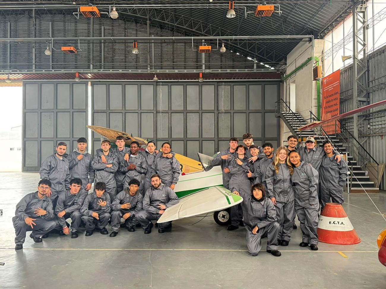 Para ello el Real Aero Club de España, a través de sus contactos en el sector de mantenimiento de aviación comercial, militar (como en la fotografía en la Base Aérea de Cuatro Vientos), general y deportiva, facilitará al CES Juan Pablo II centros de mantenimiento donde sus alumnos puedan realizar las prácticas necesarias, especialmente en el tercer año de su formación académica.