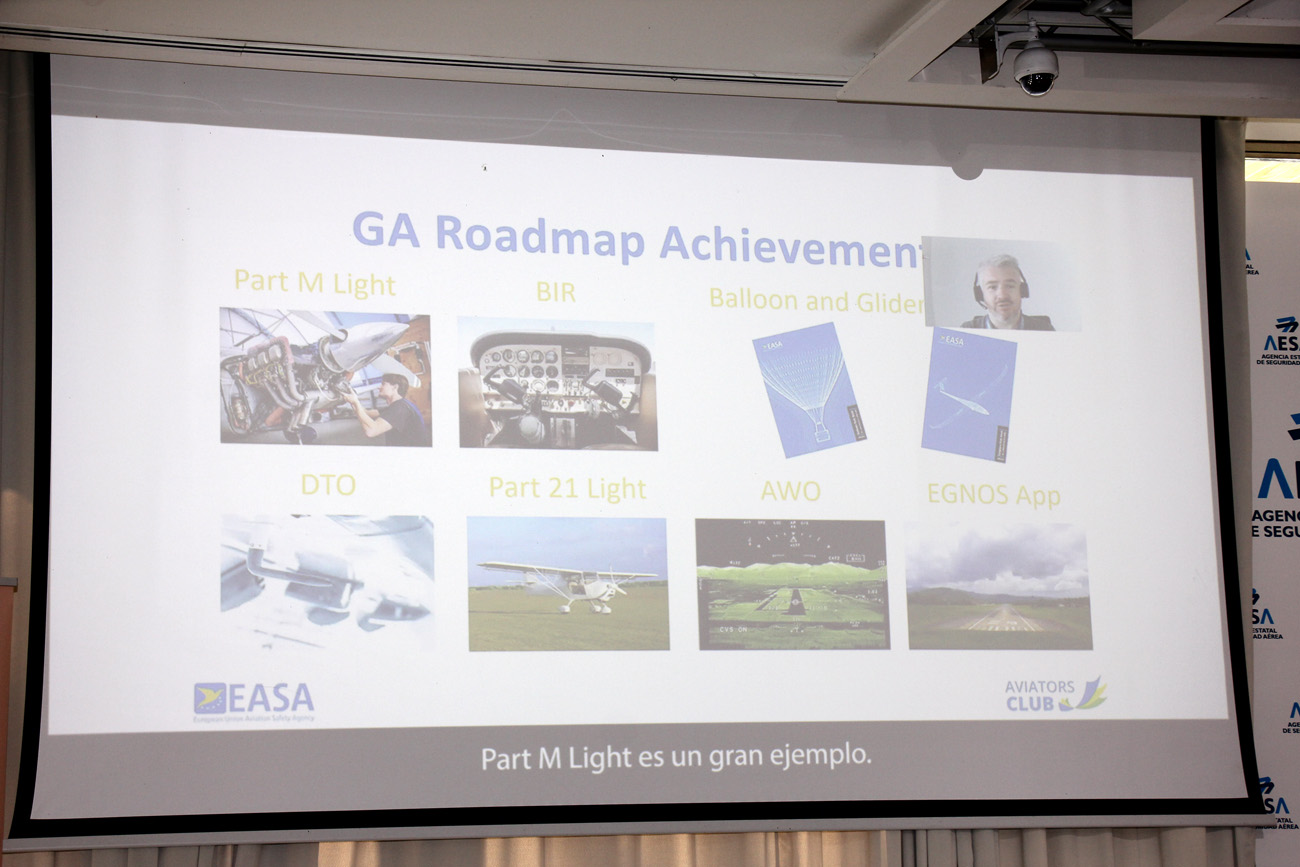 Tras él, John Franklin, responsable de la seguridad operacional de EASA, que habló de los retos y la importancia estratégica que tiene la aviación general para el máximo organismo de aviación europeo. Y como muestra el comienzo ya de los trabajos del GA Road Map 2.0 con la incorporación de la última tecnología o los nuevos modelos de negocio como las plataformas de reparto de costes. Ahora ya se están viendo los resultados de la primera fase del Road Map con la normativa Part M Light de mantenimiento, la nueva figura de las escuelas de formación simplificada (DTO) o el Basic Instrument Rating (BIR), para facilitar el acceso de los pilotos de aviación general al vuelo instrumental.