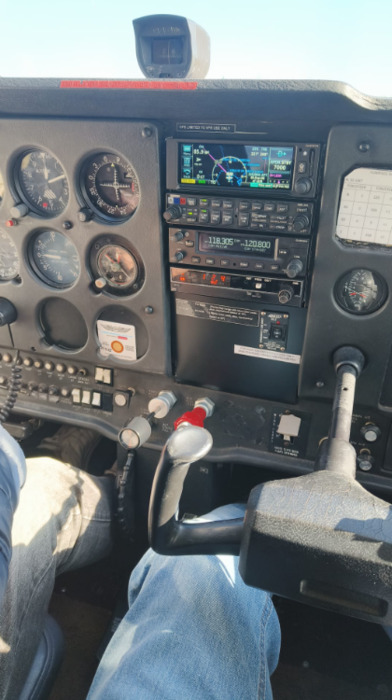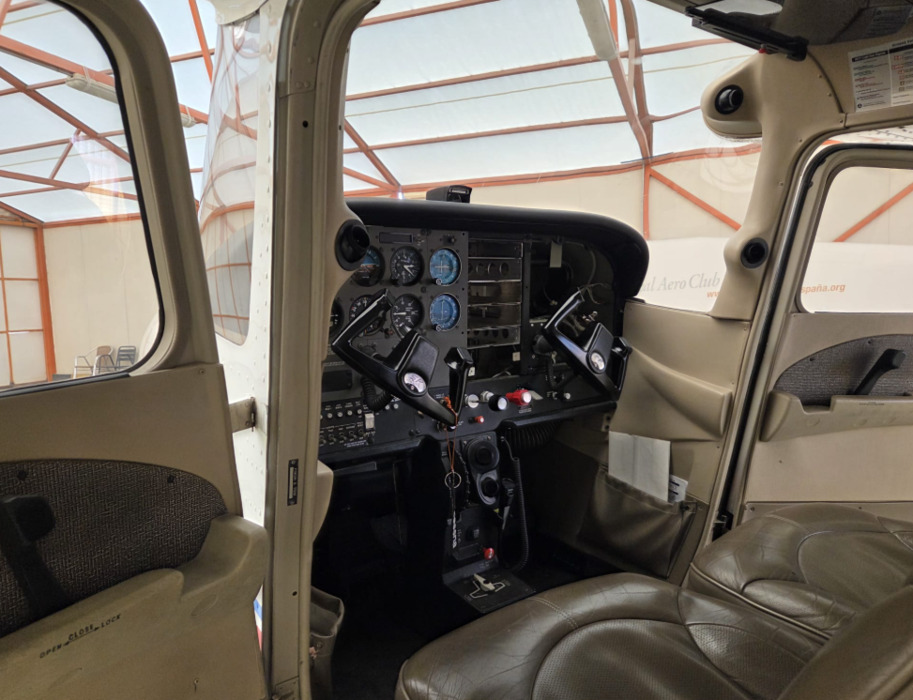 | Cabina tras la instalación del nuevo Garmin GNX 375, un equipo que combina navegador GPS y transpondedor ADS-B en un solo dispositivo compacto. | Cabina equipada con el nuevo transpondedor Garmin GTX 345, visible con el código 7210, que aporta función ADS-B in/out y mejora la conciencia situacional en vuelo. | Cabina en proceso de modernización para la instalación de un Garmin GNX 375, navegador GPS con transpondedor ADS-B integrado que renovará parte de la aviónica central. |