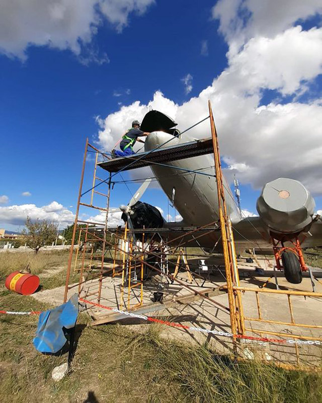 El Douglas C-47/DC-3 que están restaurando se encuentra a la entrada de Son Bonet. En la fotografía de apertura se puede ver en su estado original, antes del inicio de los trabajos. La idea es que este avión pueda ser visitado por todos los amantes de la aviación, estando ya bastante avanzada la restauración (más información en su página de Facebook). Pero les hace falta algunas piezas para completarla, por lo que agradecerían cualquier ayuda para localizarlas. Los interesados en colaborar pueden ponerse en contacto con la asociación en el correo electrónico info@amigosaviacionhistorica.org