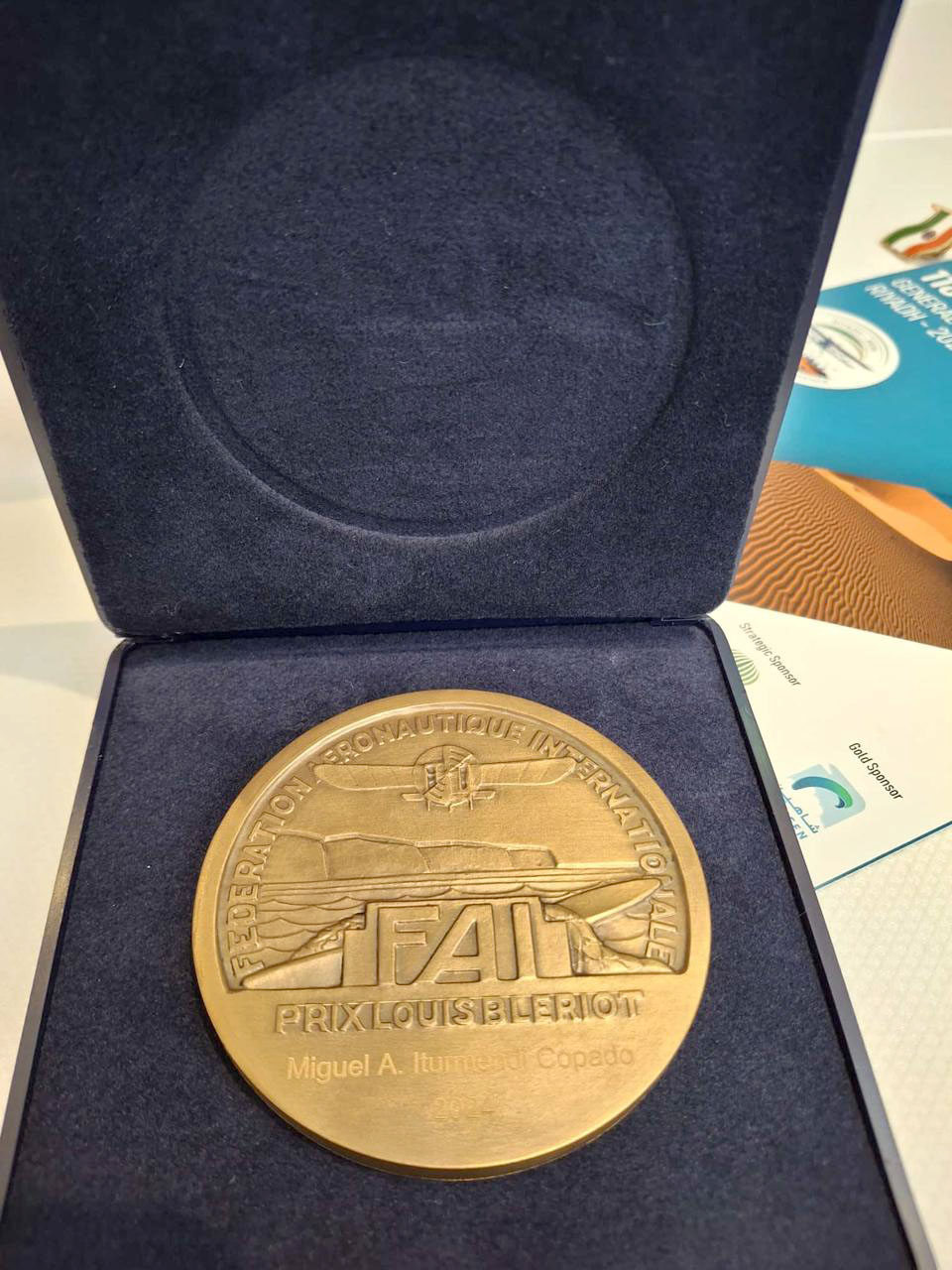 A finales del año pasado, Miguel Iturmendi, recibió la medalla Louis Blériot en el 2024 FAI Awards Ceremony por uno de sus últimos récords aeronáuticos.