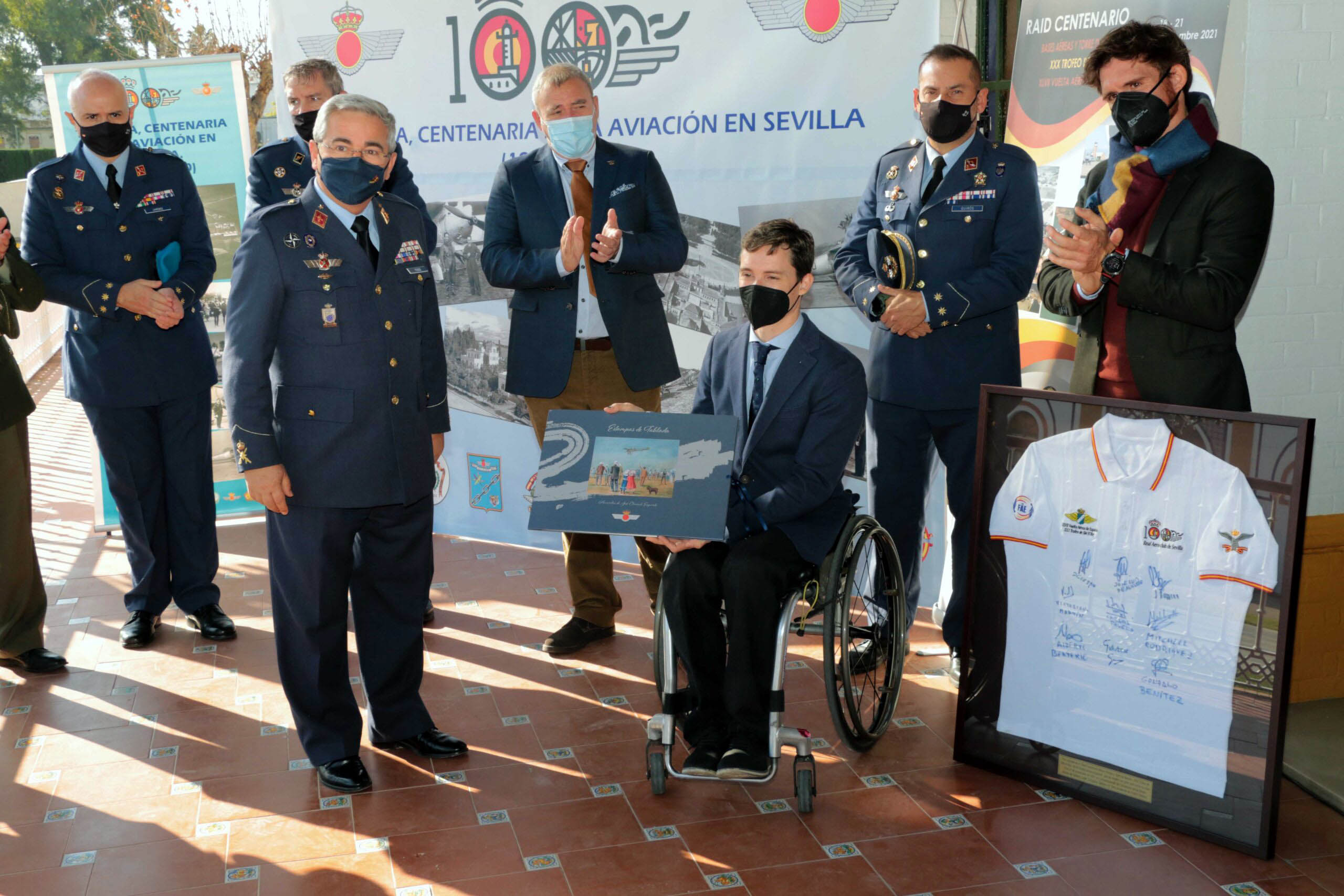 El acto de izado solemne, al que asistieron representantes del Real Aeroclub de Sevilla, estuvo encabezado por su presidente, José Luis de Augusto Gil. Tras el acto militar, el aeroclub regaló un cuadro con la prenda deportiva, creada al efecto para la prueba, firmada por los organizadores, para su exposición permanente.