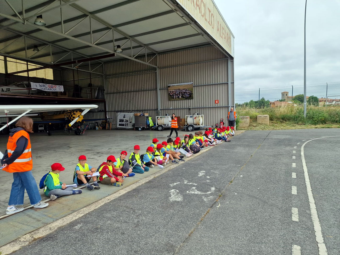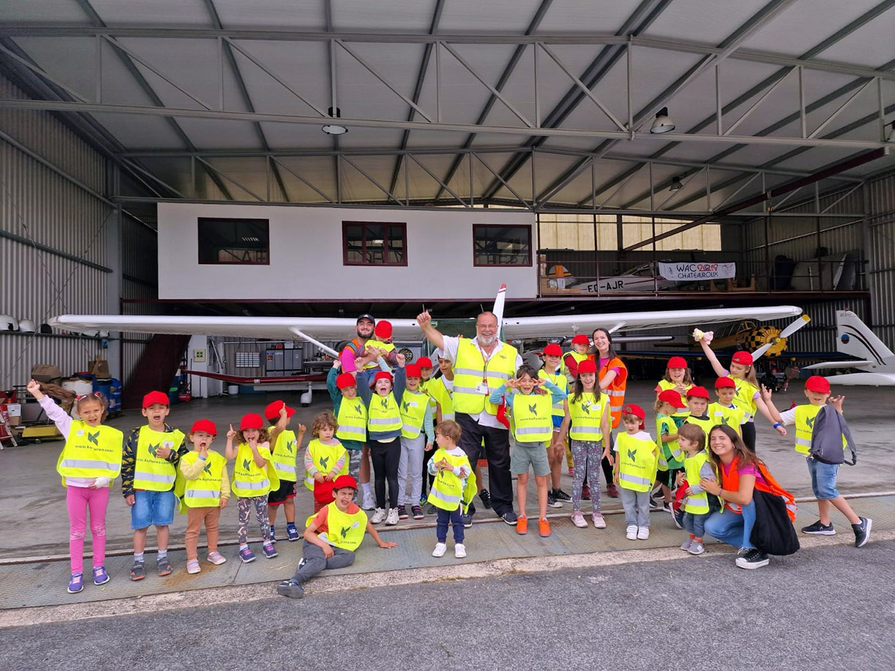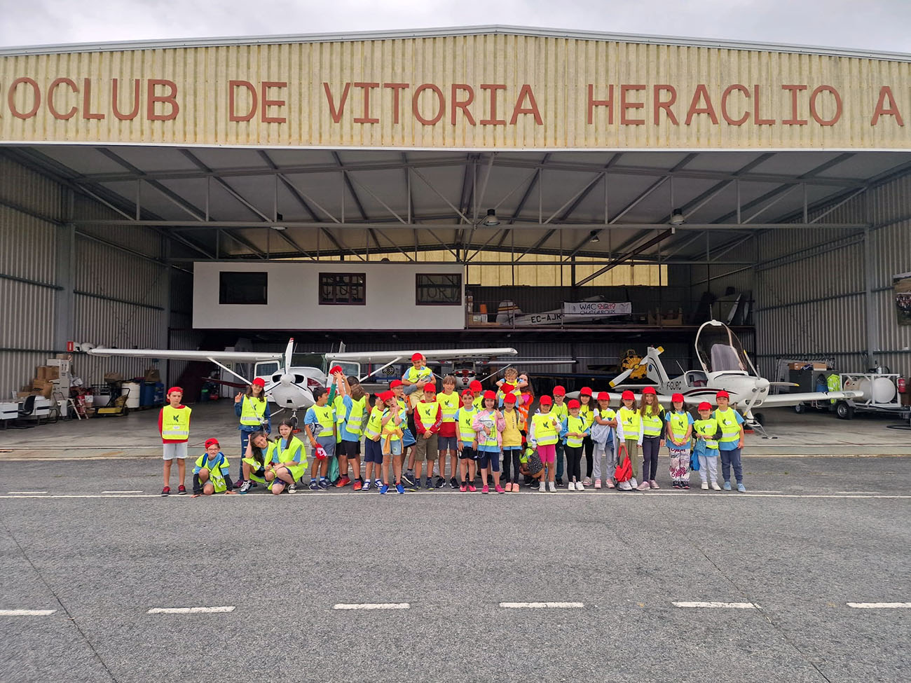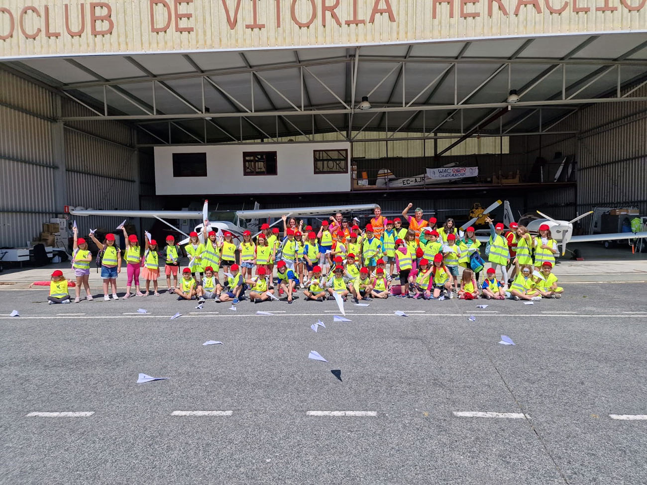 En la visita los pequeños entran en el aeropuerto, visitan el hangar del Aeroclub de Vitoria – Heraclio Alfaro, se montan en los aviones y participan en un competido concurso de aviones de papel.